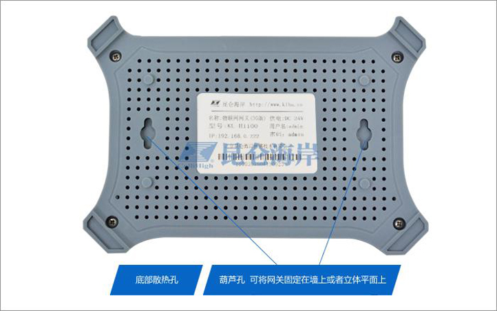 KL-H1101无线数据采集网关是北京昆仑海岸传感技术有限公司自主研发,与本公司生产的JRFW-2系列900M无线传感器配套使用的物联网网关。它提供了标准以太网接口,3G/WIFI无线接口,可以将900M无线网络连接到局域网或者互联网中,实现了互联网网络设备与900M无线传感器之间的对接。产品支持Modbus TCP协议,支持10M/100M以太网、3G、WIFI等多种互联网信息通道,方便用户通过手机、平板电脑、PC或其它移动互联网设备进行数据监测。