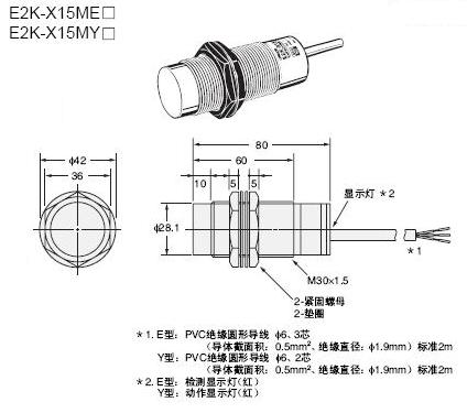 型号:E2K-X8ME1 2M圆柱型接近开关